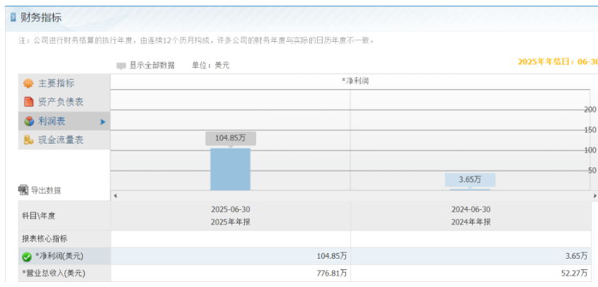 招股書顯示,2024-2025財(cái)年,Yi Feng營(yíng)收分別為52.27萬(wàn)美元、776.81萬(wàn)美元,相應(yīng)的凈利潤(rùn)分別為3.65萬(wàn)美元、104.85萬(wàn)美元。